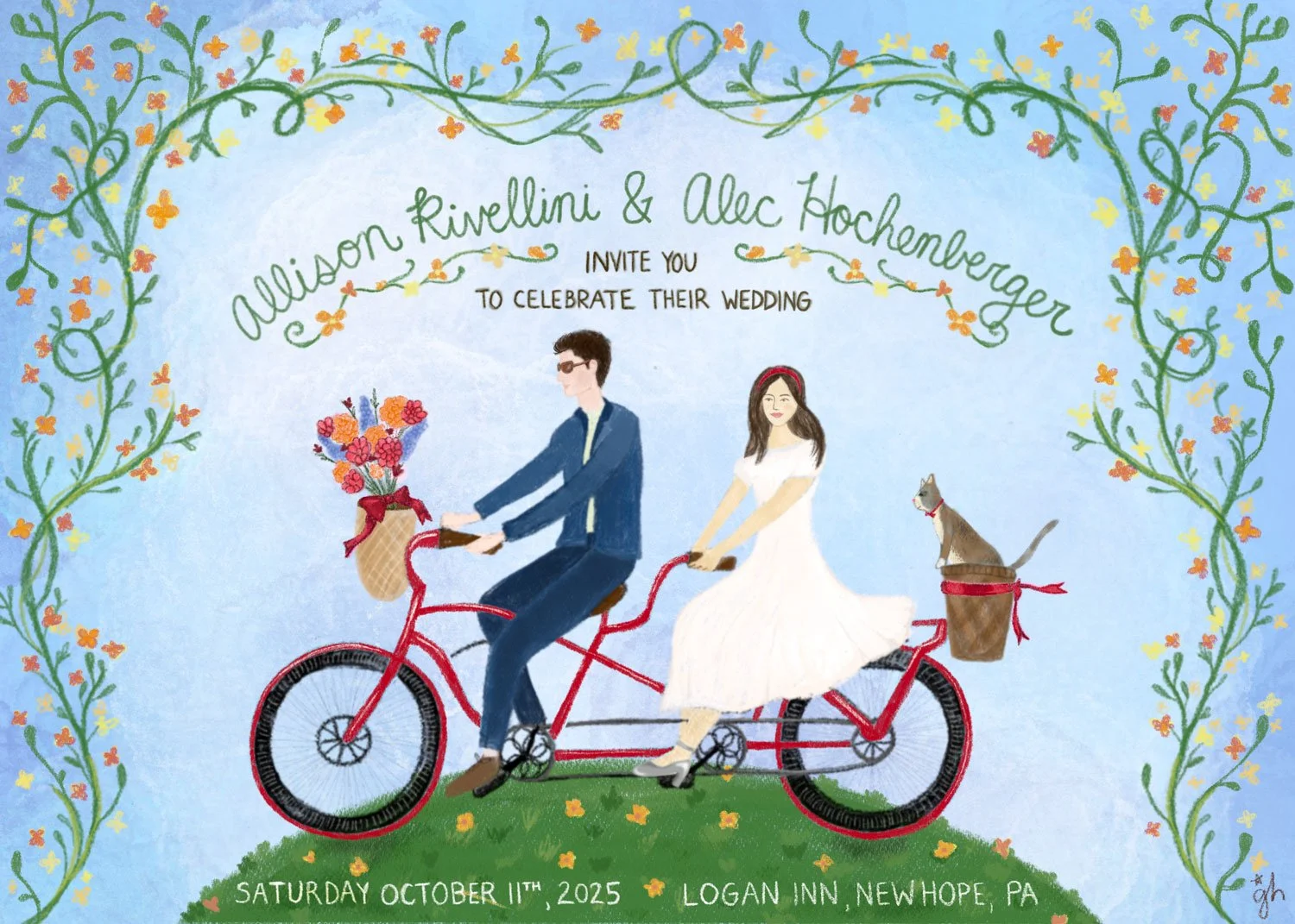 Wedding invitations created with Adobe Fresco.